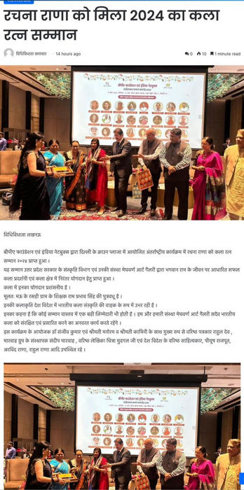 An Award show by BPA Foundation and India Netbooks - This is organised to recognize the personalities who are contributing to Indian Literature, Art , Music and other forms. The Founder of MAG is awarded in this ceremony for organising an Art Exhibition based on Life Journey of Lord Rama during Deepotsava of Ayodhya 2023. Her contribution to describe life and Ideals of Lord Rama and his relevence not for the society only but for entire humanity as well as and Individual is commendable.